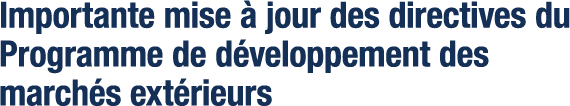 Pour amoindrir l’impact des sanctions russes, des changements ont été apportés aux Directives 2014/2015 du Programme de développement des marchés extérieurs de CPI, à savoir : — L’aide financière maximale par membre par projet a été augmentée, passant de 7,500 $ à 10,000 $. Cette mesure est rétroactive au 1er avril et les réclamations déjà soumises ont été réajustées s’il y avait lieu. — Même si plus d’un voyage identique vers un marché par année fiscale demeure au départ inéligible, des exceptions pourraient être faites si le demandeur peut démontrer au Comité d’approbation que plus d’un voyage est nécessaire pour développer de nouvelles occasions d’affaires. Voici les directives révisées : Conçu pour promouvoir les exportations canadiennes de porc, le Programme de développement des marchés extérieurs de CPI fournit une contribution à coûts partagés pour des projets génériques de développement des marchés extérieurs des sociétés membres. Ces activités génériques peuvent traiter des questions d'accès aux marchés ainsi qu’à la qualité et à la fiabilité de l’approvisionnement. Les abattoirs, les transformateurs et les maisons de commerce canadiens, membres réguliers de CPI, peuvent présenter des demandes. Description du programme Le Programme de développement des marchés extérieurs est constitué de trois volets : — Diversification des marchés étrangers (EMD) — Investigation des marchés étrangers (EMI) — Adaptation aux marchés étrangers (EMA) Diversification des marchés étrangers (EMD) Ce volet est directement lié aux activités de promotion des exportations de CPI et couvre la participation à un salon commercial ou à un séminaire de CPI et plus spécifiquement : — Participation des membres lors de séminaires organisés par CPI à l’extérieur du Canada; — Participation des membres à des foires commerciales à l’extérieur du Canada, où CPI a un stand; — Participation des membres représentant CPI à un salon international à l’extérieur du Canada; — Participation des membres à des salons spéciaux organisés par le Gouvernement du Canada. Investigation des marchés étrangers (EMI) Ce volet couvre les missions à l’étranger vers des marchés ciblés au fur et à mesure que le besoin s’en fait sentir en cours d’année. Pour se qualifier, la mission doit apporter une valeur ajoutée à l’industrie, par exemple un nouveau marché ou segment de marché, développement de nouveaux produits, rencontrer de nouveaux clients. La compagnie responsable doit fournir un rapport qui sera rendu disponible à tous les membres. Adaptation aux marchés étrangers (EMA) Ce volet couvre les missions au Canada en provenance de marchés étrangers ciblés. Elles doivent être reconnues par CPI comme bénéficiant à plus d’un abattoir au Canada. Ces visites doivent apporter une valeur ajoutée à l’industrie et sont surtout entreprises pour former le personnel d’abattoirs sur les spécifications étrangères ou pour montrer aux acheteurs étrangers la qualité et la disponibilité du porc canadien et de ses produits. La compagnie responsable doit fournir un rapport qui sera rendu disponible à tous les membres. Conditions d’admissibilité — Ne pas dépasser 10,000 $ par projet et par entreprise. CPI percevra des frais d’administration de 5 % du montant total du projet par réclamation (minimum de 200 $ par réclamation). — Un per diem sera alloué pour couvrir les dépenses quotidiennes à l’étranger tel que repas, hébergement, transport local, taxis, autobus, location, etc. Les factures d'hôtel doivent indiquer le nom du ou des voyageurs. Le per diem alloué est : - À l’extérieur du Canada (EMD et EMI) : 200 $/jour/personne* * Les représentants étrangers des membres de CPI ne sont pas admissibles. - Au Canada (EMA) : 100 $/jour/personne** ** Les Canadiens et les représentants étrangers des membres CPI ne sont pas admissibles. — Au Canada, les vols domestiques et les per diem basés sur les factures d’hôtel ne seront pas remboursés aux représentants des membres de CPI. — Les vols avec le plus bas tarif économie dont les vols inter-cités seront remboursés à 50 % (reçus originaux exigés). Une copie des factures d'hôtel sera aussi demandée pour faire la preuve que le voyage a bien eu lieu. — Le programme ne rembourse pas la TPS/TVH, les frais pour les bagages additionnels, les frais pour la sélection de sièges ni l’assurance voyage. — Les séjours supplémentaires lors d’une visite dans un pays autre que celui où la foire commerciale ou le séminaire de CPI a eu lieu seront admissibles, mais les factures d’hôtels seront nécessaires de façon à calculer le per diem. — En vertu des clauses et des conditions du programme Agri-marketing, seul le plus bas tarif en classe économie (tarif Flex) peut être remboursé. Aucun tarif en classe affaires n’est admissible. Le remboursement maximal est le suivant : - Certains pays de l’Asie de l’Est : le Japon, la Chine et la Corée du Sud - 3,000 $ - Russie - 2,500 $ - États de l’Union européenne - 2,000 $ — Pour les autres destinations, CPI se basera sur les tarifs Flex d'Air Canada pour déterminer si la demande de remboursement est raisonnable. — Plus d’un voyage identique vers un marché n'est pas admissible par année fiscale pour les projets EMI, par exemple une deuxième visite à un même client. Des exceptions pourraient être faites si le demandeur peut démontrer au Comité d’approbation que plus d’un voyage est nécessaire pour développer de nouvelles opportunités d’affaires. Processus de demande Pour les projets EMD, le formulaire d’inscription aux activités de CPI doit être dûment rempli et signé avant la date limite d’inscription pour les activités en question. Contactez CPI pour obtenir la plus récente copie du formulaire pour les activités